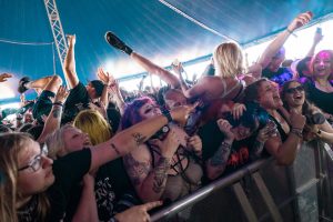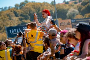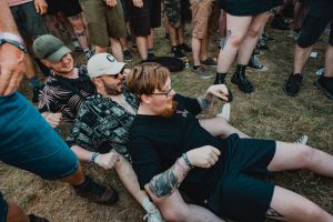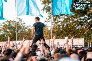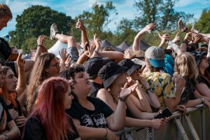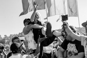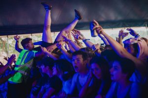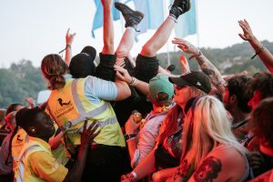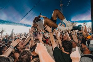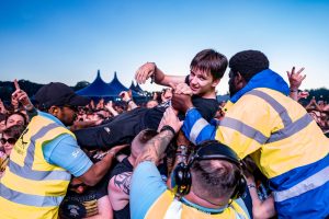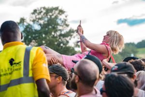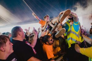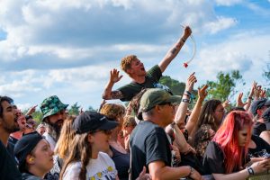 Crowd surfers exiting the main stage -2000 Trees Festival 2022