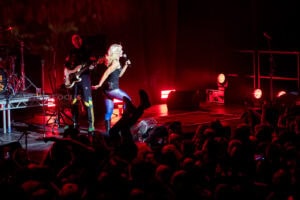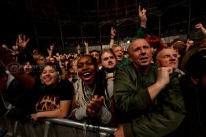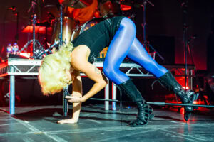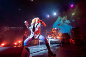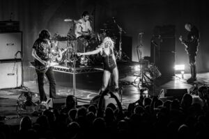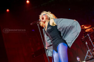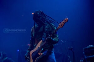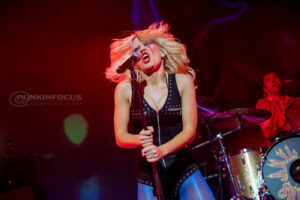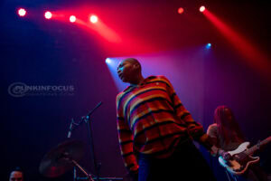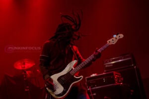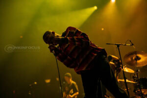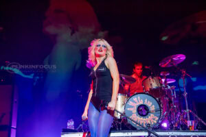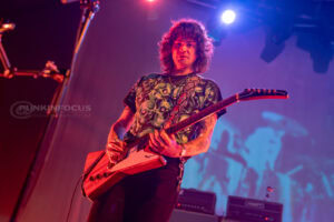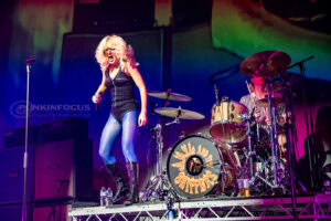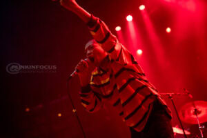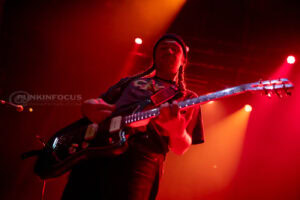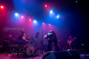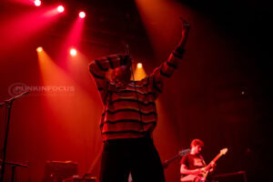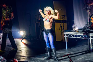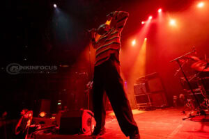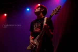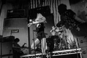 KT leaves the stage at one point, and drummer Chris takes over on vocals. This is not necessarily a good thing. The material for this section of the show is decidedly thrashy. On tonight’s evidence, Chris couldn’t carry a tune in a bucket, but he made a reasonable effort. Thankfully, KT soon returns. Her heart is in the right place: she bellows “fuck Trump!” and “Free Palestine!” to enormous crowd approval, and (in my opinion) rightly so! Upchuck’s set is over too soon, and KT is in the crowd for the last song. Despite my minor misgivings about Chris’s vocals, Upchuck were worth arriving early for.