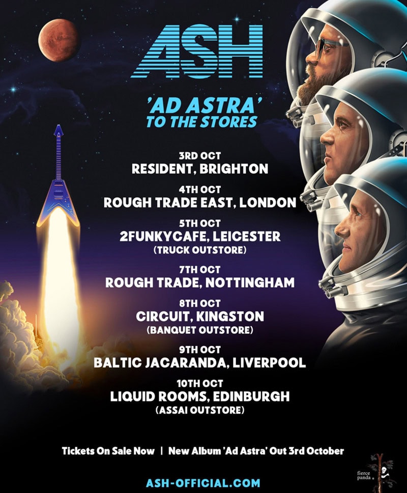 Ash will celebrate Ad Astra with a series of instore and outstore performances around the album’s release, followed by a major UK and Ireland tour later this year and into early 2026. Many shows are already sold out, so move fast.