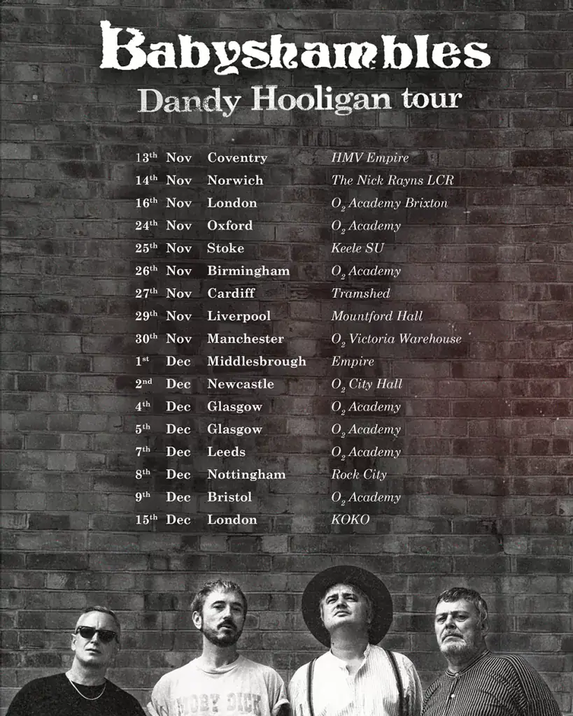 To support the new single, Babyshambles are hitting the road across the UK this winter. The Dandy Hooligan Tour brings the band to cities across England, Wales, and Scotland — with several dates already sold out. Tickets are available via TEG Europe.