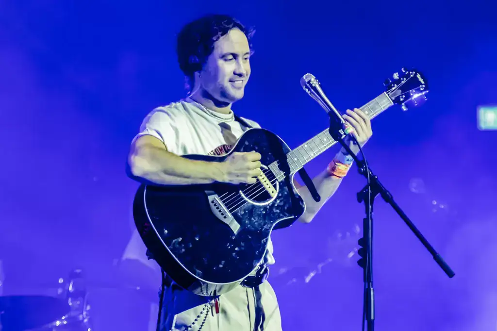 However, before the celebrations get underway, there’s the small matter of support band The Horn to consider. The band describe themselves as “an indie rock band”. Well, it’s indie Jim, but not necessarily as we know it. The band are all dressed in white, and look and sound as if they’ve stepped out of a Top Of The Pops re-run from 1984. Vocalist Jonny Taylor has an extraordinarily plaintive voice, which makes him sound as if he’s constantly pleading for something: forgiveness probably. It becomes a little wearing after a while. They play their first single “from a while back”. It’s called Passion, something that the song is completely devoid of. It does have a reasonable guitar solo from Danny Monk though.