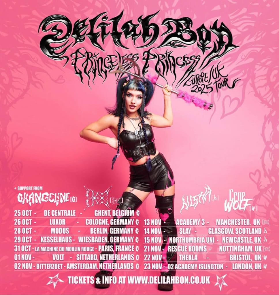 To match the EP’s fire, Delilah Bon will hit the road for a 13-date UK and European headline tour this autumn, marking her biggest UK shows to date, including a major stop at London’s O2 Academy Islington. French rapper Changeline joins her across Europe, while BEX, Crae Wolf, and Ailsha are set to appear at select UK shows.