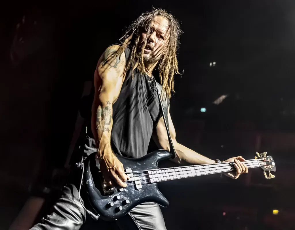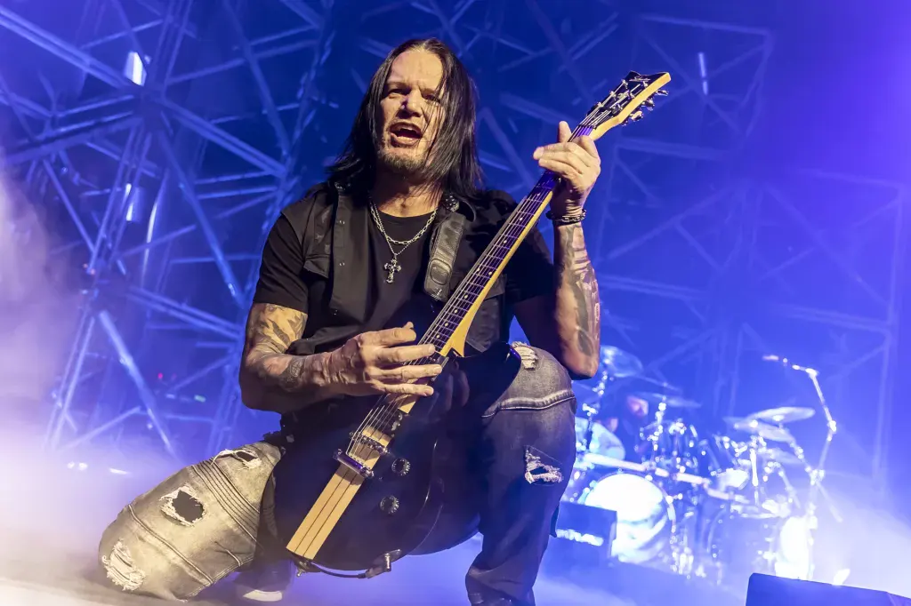 After the interval, the stage set changes — the drums are now much higher, and David Draiman wears a long leather coat. The second set opens with their latest single I Will Not Break — with a monstrous guitar solo from Dan Donegan that feels like it could split the sky. On Ten Thousand Fists, John Moyer stands on the drum riser steps like a kid who’s found his new favourite toy. David asks, “Shall we take things up a notch?” as a towering black figure appears behind Mike Wengren. They launch into Bad Man from Divisive. Dan Donegan delivers another blinding solo full of blur-tapped lines. Next comes a cover of Land Of Confusion by Genesis, which Disturbed released in 2005. Unsurprisingly, it’s heavier — and brilliant. Dan turns in yet another storming solo.