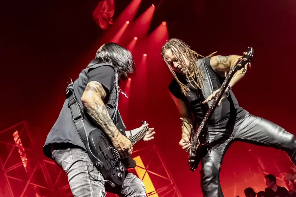 The show also demonstrates how much Disturbed have changed since The Sickness. There’s relatively little lead guitar on the album — or in the first half of tonight — something that changed significantly later. The staging is fairly minimalist and the drum riser unusually low — as if nodding to their earliest touring days. There’s theatricality too: vocalist David Draiman is brought onstage on a trolley. And the pyrotechnics are ferocious — during Stupify, the flames make my face feel genuinely hot. The crowd sing every word of Down With The Sickness.