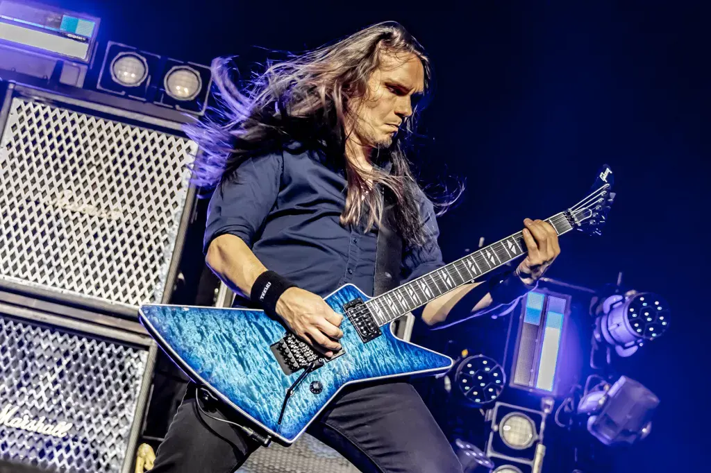 I’d forgotten how well Megadeth harmonise. Seriously! Listen to Hanger 18 from Rust In Peace — the dual lead work is stunning. As the only constant member of Megadeth, Dave Mustaine is the undisputed band leader — but he’s a benevolent one. He shows no need to hog the spotlight, content to stand back playing rhythm while Teemu Mäntysaari solos on She-Wolf from Cryptic Writings. At one point, someone heckles Dave — he responds: “Gives me a migraine headache to get down to your level”. Fair enough.