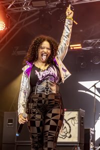 Leaving the final chords of Fury’s set a quick dash brought us back to the Firestarter stage and before us is the enigmatic Bobby Dazzle with her style of music that has clear vestiges of 1970’s glam rock, albeit updated for the 21st century. It’s an interesting mix, and she has some seriously catchy songs on show today. Let’s turn the clock back to our youth and immerse ourselves in this set, because she has it all: memorable tunes, a huge on-stage personality and tons of sass.