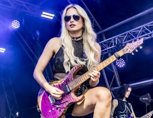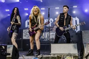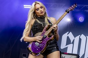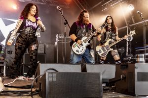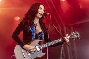Switching back to the second stage, and if Rosalie Cunningham had seemed a little more laid back, then Kim Jennett hit the stage with a burst of enthusiasm and attitude as she stoked up a metal fire and set the stage alight. Kim is a pretty incredible artist who is clearly starting to make waves, and her energetic performance was of the highest quality. Not only does she have an impressive stage persona and works it nonstop, but she also has some stupendous material and a vocal range and ability that is more than capable of hitting some incredible highs. She has the tone, she has the power, and this was showcased to great effect through her cover of the Led Zeppelin classic, Immigrant Song. Those opening cries lifted the roof of the stage and will be resounding in the ears of her fans for weeks to come.