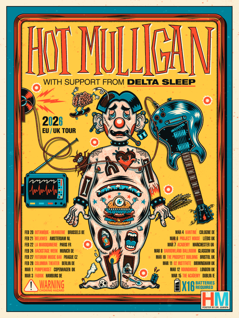 Following a run of arena shows alongside Pierce The Veil, Michigan’s emo torchbearers Hot Mulligan are stepping out on their own headline tour across Europe, the UK and Ireland in 2026. Set to kick off in Brussels on February 20th and wrap in Dublin on March 15th, the 15-date tour includes a stop at London’s storied Roundhouse and support from UK math-rock favourites Delta Sleep.