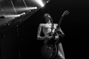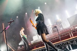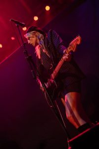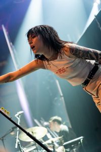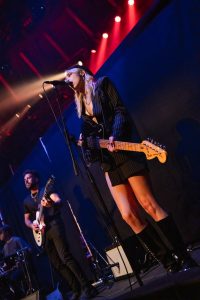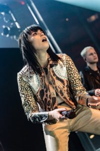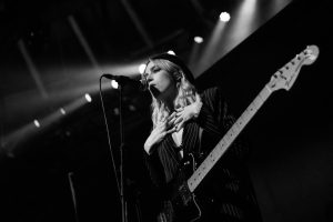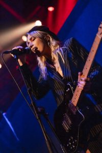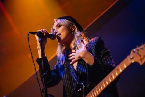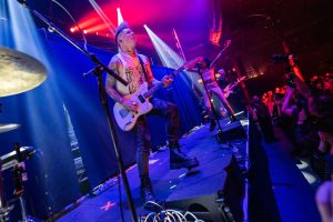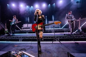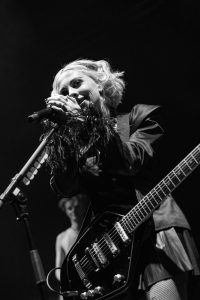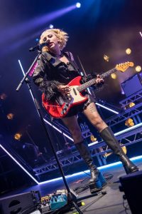 The band come on to some wild strobes, which light up the venue and burst into the hit ‘Change’, which soon gets this capacity crowd jumping. Vocalist Heather Baron-Gracie dressed in a stunning black satin top with feather cuffs, black calf-length platform boots and now sports a short blond hairstyle that complements the look with a fantastic black Vox guitar strapped across her shoulder. The vocalist is backed by second guitarist Hugo Silvani, bassist Charlie Wood and keeping the beat at the back Ciara Doran.