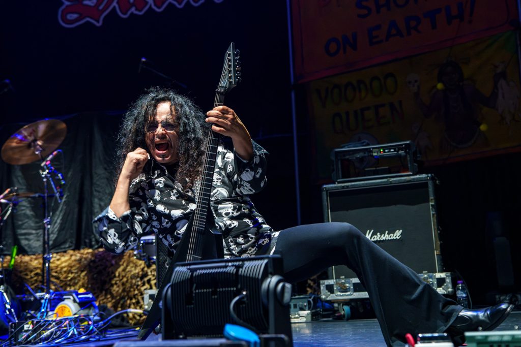Certainly, there was no dissension as following these medleys Blackie stood centre stage, just the man and his guitar, he began the early strains of Wild Child in a semi-acoustic manner. After the first couple of verses, the rest of the band kicked in and took the song to its full vociferous crescendo. By then, it seemed as though W.A.SP. were here for the night, and after a strong semi-socio-political speech that was well received by the adoring fans, they fired into a high-octane rendition of Blind In Texas, with Blackie showing his fitness by riding his microphone stand ‘Elvis’. Gone are the back complaints that have been highlighted in the past, and we now have a fully fit and functioning Blackie.