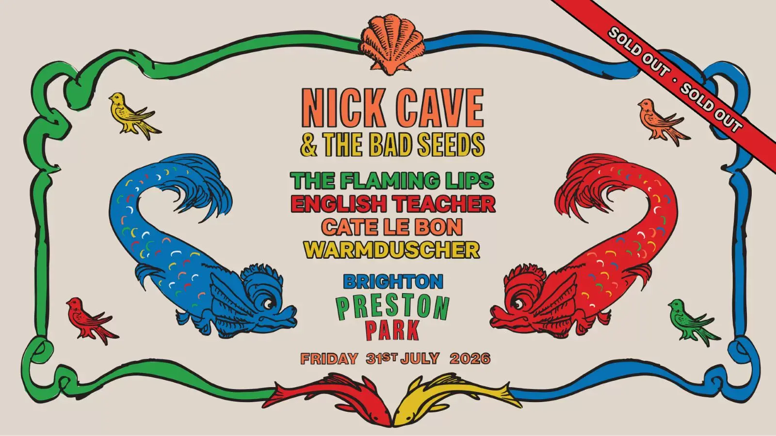 Nick Cave & The Bad Seeds have revealed an impressive supporting line-up for their sold-out headline show at Preston Park in Brighton on Friday 31 July 2026, with The Flaming Lips, English Teacher, Cate Le Bon and Warmduscher all set to join the bill.