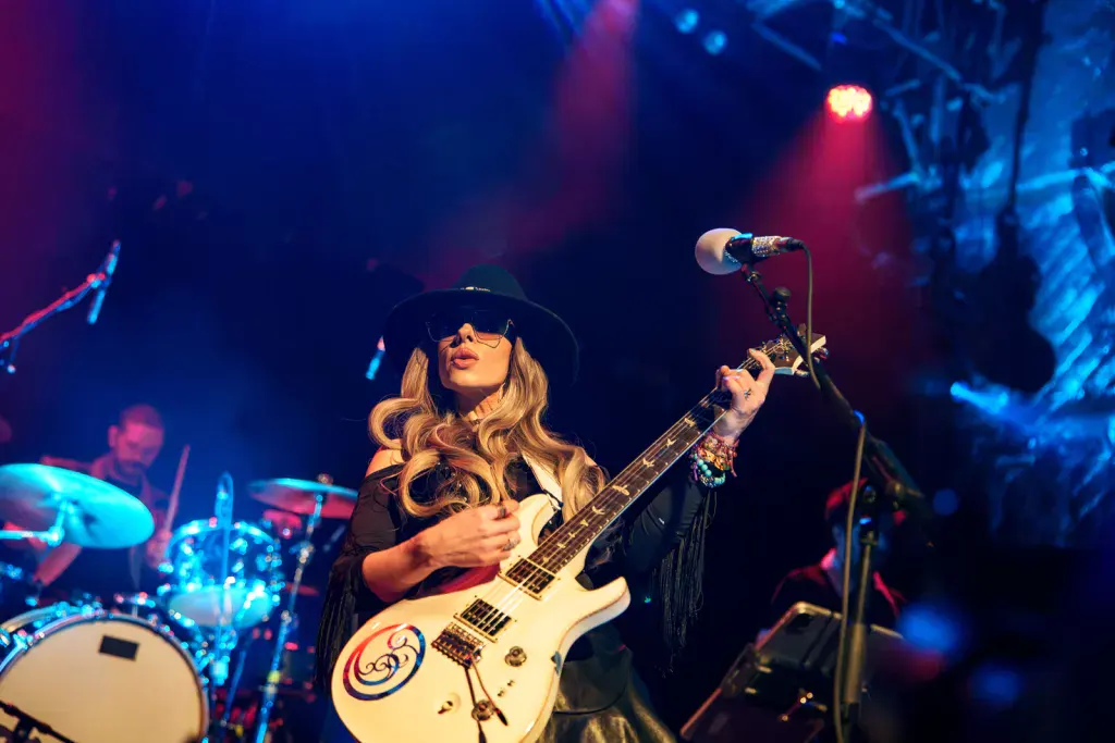 First Time Blues immediately showcases the telepathic connection between guitarist and drummer, with the percussion perfectly accentuating Orianthi’s jaw-dropping playing. To say her guitar work is out of this world feels almost reductive. It may be heresy in some circles, but there are moments where she feels like a female Jimi Hendrix. She really is that good — a comparison she herself leans into later in the set.