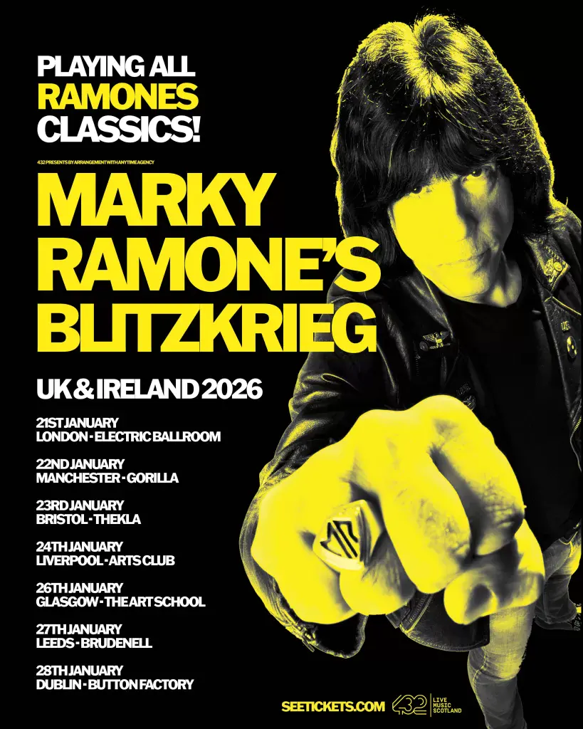 One of punk rock’s most enduring figures, Marky Ramone, is gearing up for a blistering return to UK and Irish stages in 2026. The legendary drummer—who powered the Ramones for over 15 years—will bring his explosive Blitzkrieg live show across the region to mark 50 years since the release of the Ramones’ self-titled debut in 1976.