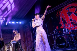 And now for something completely different! I honestly have no idea what to expect as I enter The Opera House to see Rites Of Hadda, but I had heard some good things about this band and thought, why not, as I’ve never witnessed an Anarcho-pagan-gothic-psychadelic-queer-witchpunk band before! From the moment lead singer Wasp enters the stage, and what an entrance, wearing a wasp-coloured frilly puffy dress, I instantly realise that Rites Of Hadda are made for The Opera House. As I have mentioned previously, the stage is massive, but Wasp’s personality fills it and some more. If you love extravagance and flamboyance, then you are in the right place.