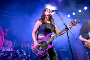 With Loud Women taking control of the RIS for today there are some interesting new bands on show. Baby Said is probably not the standard fare that you would expect at a punk festival, but they are here along with others set with the challenge of breaking down barriers. They take their name from a song by their favourite band, Maneskin, and would probably be classified as more alt-rock in their style with some heavy guitar riffs, and there are melodious vocals from teenage Portsmouth based, Italian/Punjabi sisters Veronica and Jes Pal. They have progressed from being a covers band, though they still do this to fund the band, to showcasing their own talent in Baby Said. Holly Knowles on rhythm guitar and backing vocals, along with Maddie Hackett on drums, complete this all-female quartet.