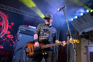 So whilst things are heating up outside I pop into The Opera House once again to escape the fascistic madness. Formed in 2010 in Reading and describing themselves as having a “distinctive and wild brand of sleazy hypnotic 50s psycho-delic garage punk”, The Go Go Cult is a band that certainly appeals to me. My first observation is that lead singer Nige has that Nick Cave look about him, and his vocals aren’t too dissimilar at times as I soon find out. There is a lot to like about the five-minute-long opening number ‘Town Called Sorrow’ taken from the ‘Tarantula’ EP released in 2022, with its Johnny Cash influences and I find I’m toe tapping along which makes a relaxed change from all the moshing. Given that they only play a seven-song set in 35 minutes you would be right to imagine there are some long songs in there, especially as one of my favourites has to be another track taken from the ‘Tarantula’ EP in ‘Devil In The Process’ which comes in at about three minutes, including close to a minute’s worth of feedback at the end. It’s obvious to see why The Go Go Cult have been chosen to support such bands as King Kurt, The Rezillos, The Meteors, The Guna Batz, and Spear of Destiny and they would be well worth a watch on their own merits in a smaller venue.