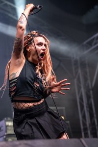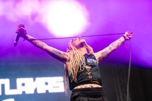 The only time I see a glimpse of a smile is when the youngest crowdsurfer I have seen at this festival makes it to the front and is safely carried over the barrier by the security staff who I think have been very attentive the whole festival, always offering water to those of us down the front. Meryl makes a dream come true by ensuring the young boy gets to share the stage and strut around like a Mini Meryl with a flash torch, and once again a youngster who knows all the lyrics. ‘If This Is Life’ is another immense track, and by the time the set is over, I have started to feel much more comfortable with my surroundings and not so intimidated by Meryl, after all, he’s angry with the world and rightly so.