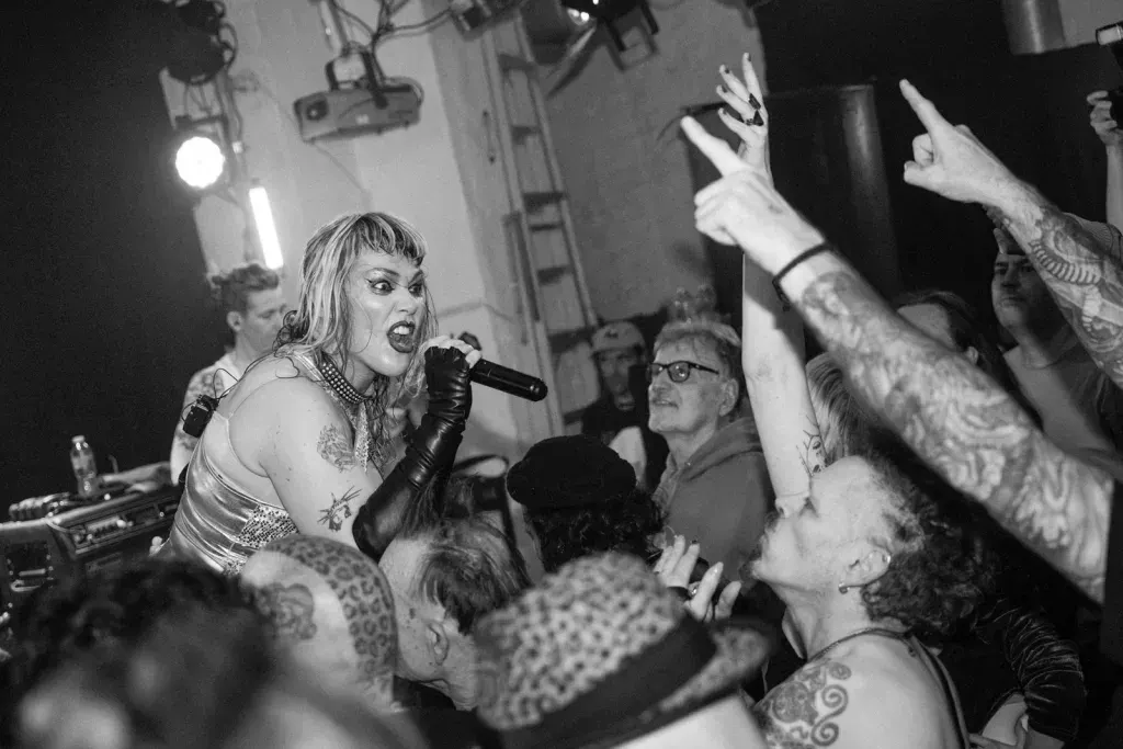 Tonight, they started their set very noisily, complete with a frontperson clad in a sequinned dress, who promptly jumped into the unsuspecting but very welcoming crowd. By song two, the singer got rather soulful in the vocal department, hitting some impossible notes in the process. Their song Lonely lulled us into a false sense of security before the band headed into a theatrical punk odyssey that was reminiscent of Pussy Riot in its delivery. This stuff was political, and I was really energised by it.
