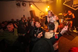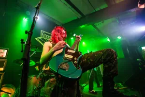 Leibniz are also commendably trans-positive, with their singer/guitarist coming from the trans community, and it’s not often you see a crowd member cartwheel through a mosh pit. This band were really very good, and you did wonder how anyone could follow them, until…