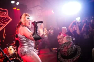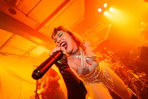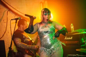Tonight, they started their set very noisily, complete with a frontperson clad in a sequinned dress, who promptly jumped into the unsuspecting but very welcoming crowd. By song two, the singer got rather soulful in the vocal department, hitting some impossible notes in the process. Their song Lonely lulled us into a false sense of security before the band headed into a theatrical punk odyssey that was reminiscent of Pussy Riot in its delivery. This stuff was political, and I was really energised by it.