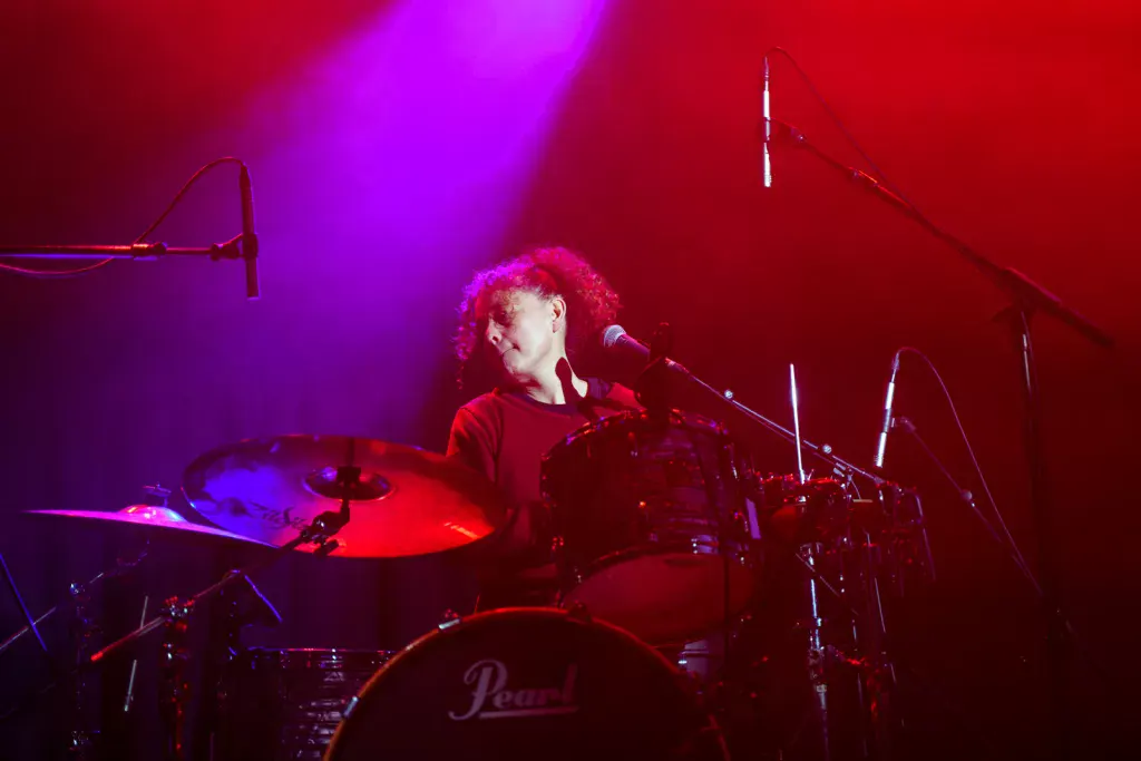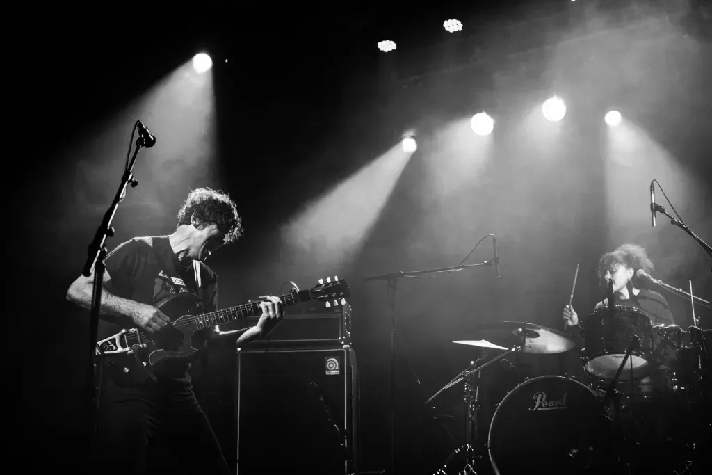 Chimers clearly aim to cram as many songs into their slot as possible, barely pausing between numbers. Padraic fluffs the intro to Glossary but laughs it off, nailing it the second time around. Binx takes lead vocals on Later Skater, though it could sit higher in the mix as Padraic causes aural chaos with his pedals. Timber opens with an almost tribal drum pattern, while during People Listen (To The Radio), the duo are joined by saxophone and trumpet players from tonight’s headliners, adding avant-garde textures. They close with 3am, with Binx reclaiming the vocal lead halfway through.