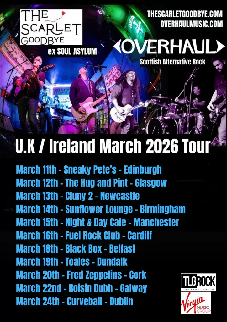 With creative momentum firmly behind them, The Scarlet Goodbye will spend much of 2026 on the road, starting with a run of dates across the UK and Ireland this March. Scottish rock outfit Overhaul will join them as support throughout the tour.