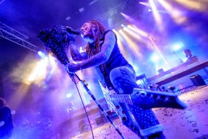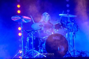 Jon Poole was a whirlwind on bass, moving energetically across the stage and playing up to the crowd. On backing vocals and guitar, Ben Marsden seemed right at home, while Pontus Snibb’s impeccable drumming held everything together. Ginger was ever the showman and full of energy from start to finish, you could feel what this night meant to him personally. His dreadlocks flew through the air as he twisted and turned around the stage, starting the set with a striking white-with-red-polka-dots Ibanez Explorer and later switching to what looked like an all-black BC Rich and delivering stunning riff after riff.