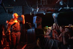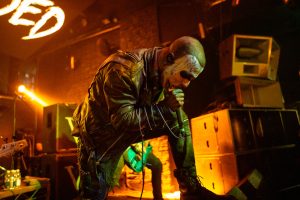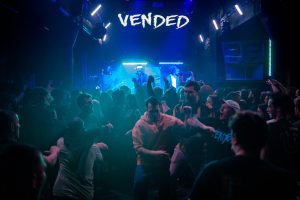 By 9 PM, the excitement reaches its peak as the iconic Tainted Love plays over the PA, signalling Vended’s imminent arrival. The band bursts onto the stage under a blue glow, with Griffin Taylor’s painted face in white and blue setting a dramatic tone. They dive straight into their recent single, Nihilism, igniting the crowd into a frenzy of bouncing and headbanging.