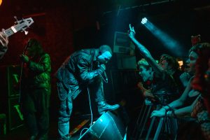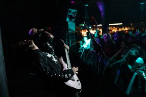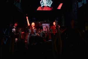 At 8 PM, The Gloom in the Corner, an Australian metalcore band known for their conceptual storytelling and heavy sound, takes the stage. Their mix of melody and all-out assault goes down a storm. Frontman Mickey Arthur effortlessly switches vocal styles along with the music, and each bludgeoning track gets the moshpit moving, and the crowd laps it up. After the swift 30-minute set, the band goes straight to the merch stand, posing for photos with the newfound fans.
