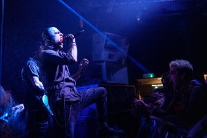 With its all-black decor and proximity to the beach, the Arch in Brighton is the perfect setting for a night of intense metal music. Arriving just after 7 PM, I catch the tail end of Profiler’s set. They’re the first support act, already captivating the early crowd with tracks from their debut LP, A Digital Nowhere. The atmosphere is electric, and the audience, primarily young, sports a good mix of Slipknot and Vended t-shirts, a testament to the anticipation building for the headliners and the long queues for the merch stand.