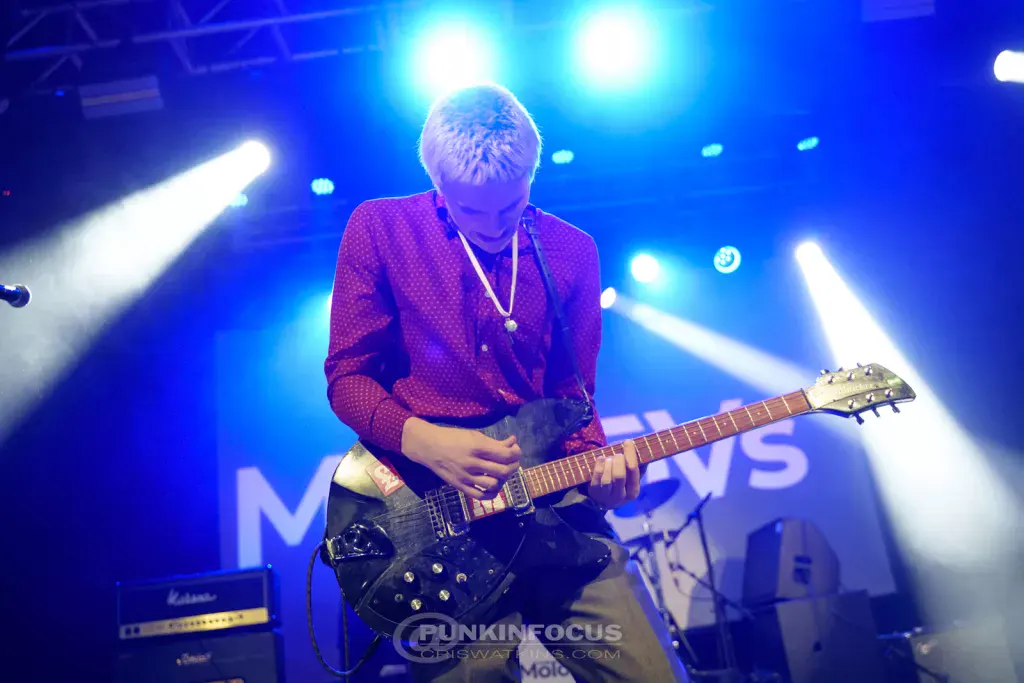 Finally, it’s time to see whether The Molotovs live up to the hype. By the end of the opening song, Urbia, it’s blindingly clear that they do. With Matt Cartlidge’s choppy crash chords and his sister Issey’s powerful bass lines, there’s more than a bit of a nod to The Jam. More importantly, though, it’s an influence that they’re taking along with them. Newsflash is immediate, and the siblings harmonise with the perfection that only siblings can have. A storming cover of David Bowie and the Spiders from Mars’ Suffragette City follows, with Matt effortlessly replicating Mick Ronson’s guitar solo.