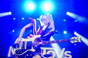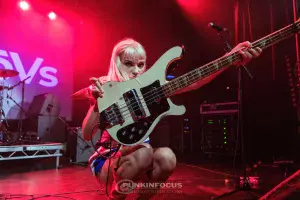 From the get-go, the crowd are with them, with a seemingly never-ending mosh pit and mega-enthusiastic crowd surfers. Issey is something of a bass hero. They’re very few and far between! Her playing is powerful and fluent, with elements of Bruce Foxton and mid-1960s Paul McCartney evident in her playing, with the odd hint of John Entwistle too.